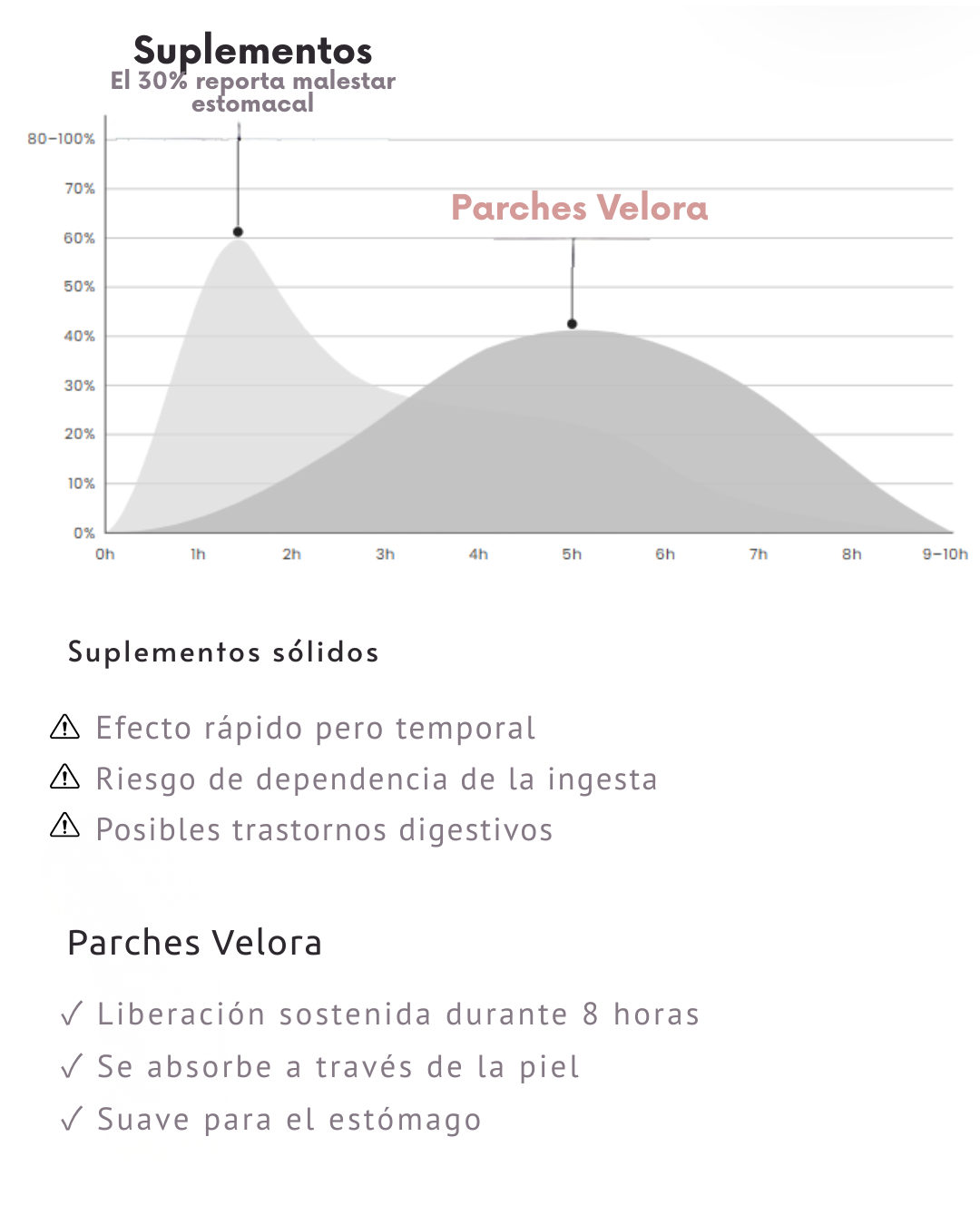 Cada parche ofrece 8 horas de apoyo botánico sin pastillas ni soluciones de emergencia.