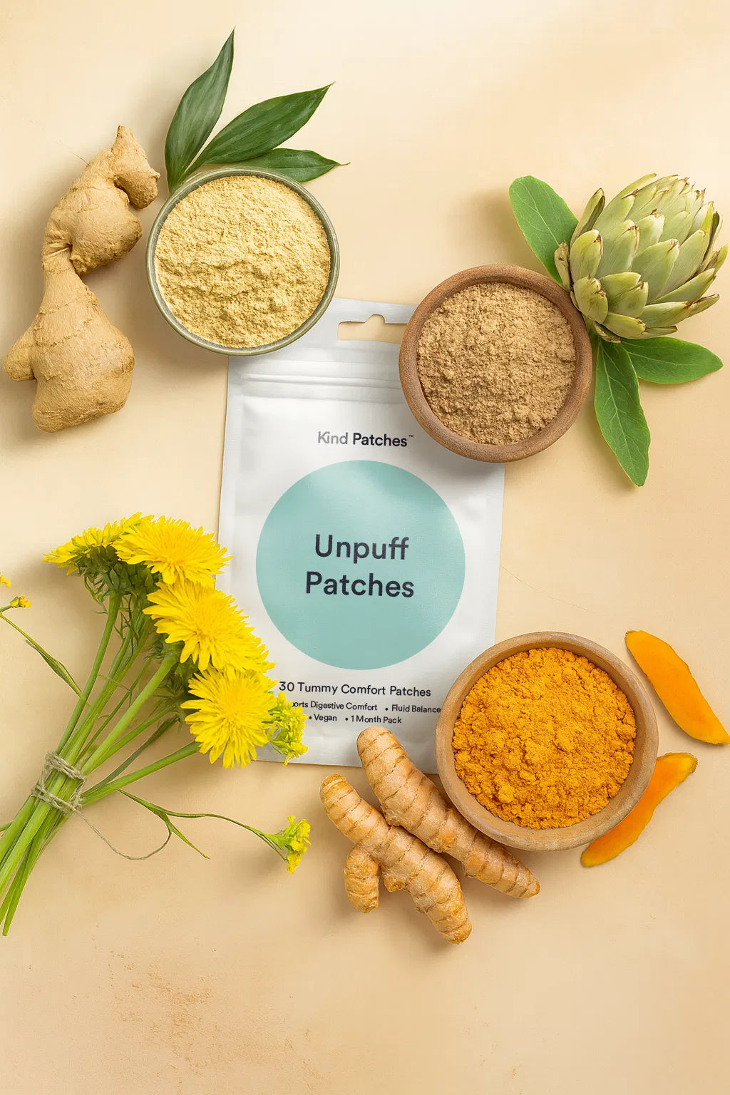 Unpuff Patch es un parche de origen vegetal formulado con botánicos como diente de león, hinojo, alcachofa, jengibre y cúrcuma, tradicionalmente utilizados para favorecer una digestión saludable y el equilibrio de líquidos.